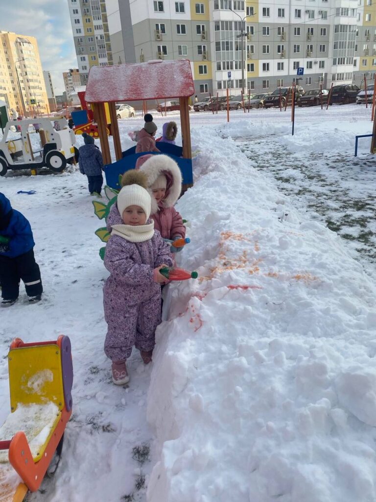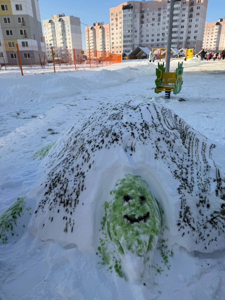 Одно из самых любимых занятий детей зимой – лепить из снега. Этот процесс получится интереснее и веселее, если захватить из дома какие-нибудь предметы (морковку, шарфик или сломанные солнцезащитные очки) Представь, какой забавный получится снеговик? Чтобы ему было не скучно слепите ему подружку. Вообще, из снега можно слепить все, что угодно: колобка, черепаху, башню, крепость.