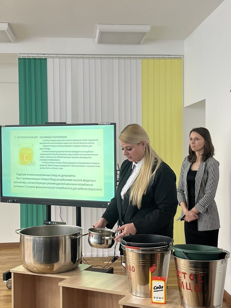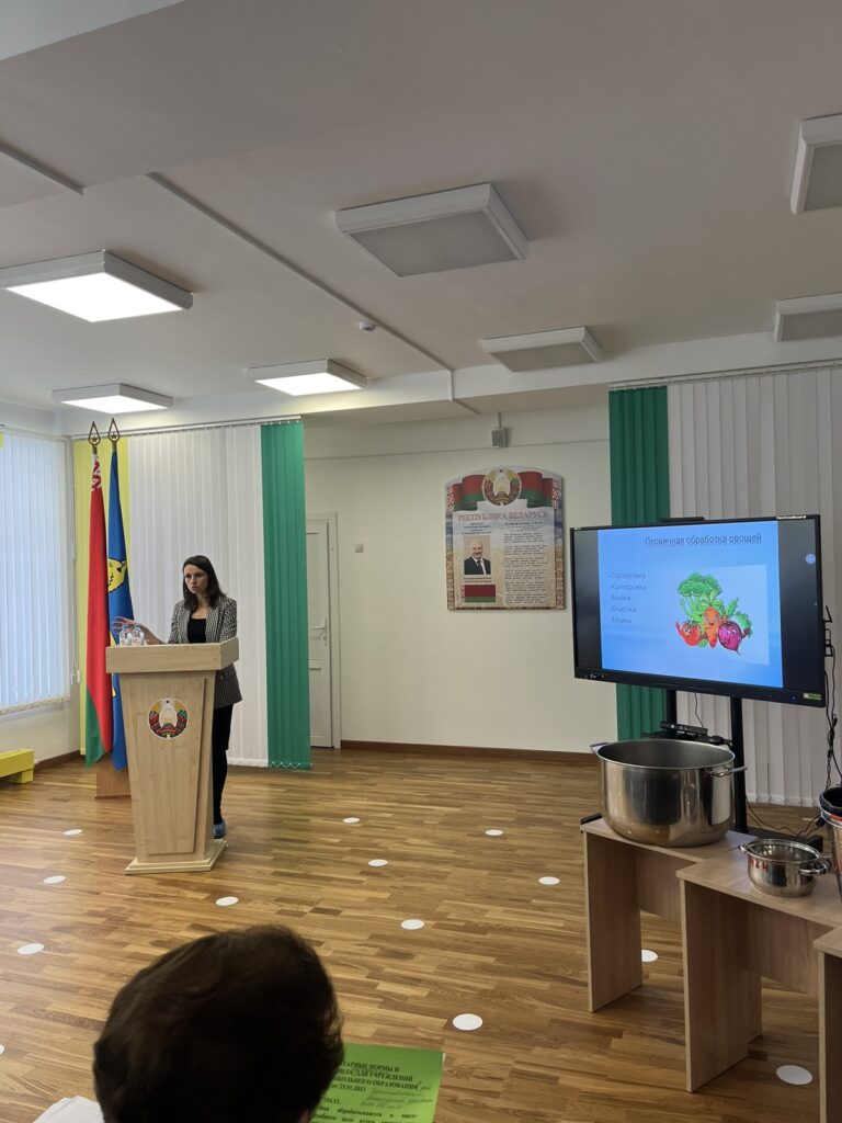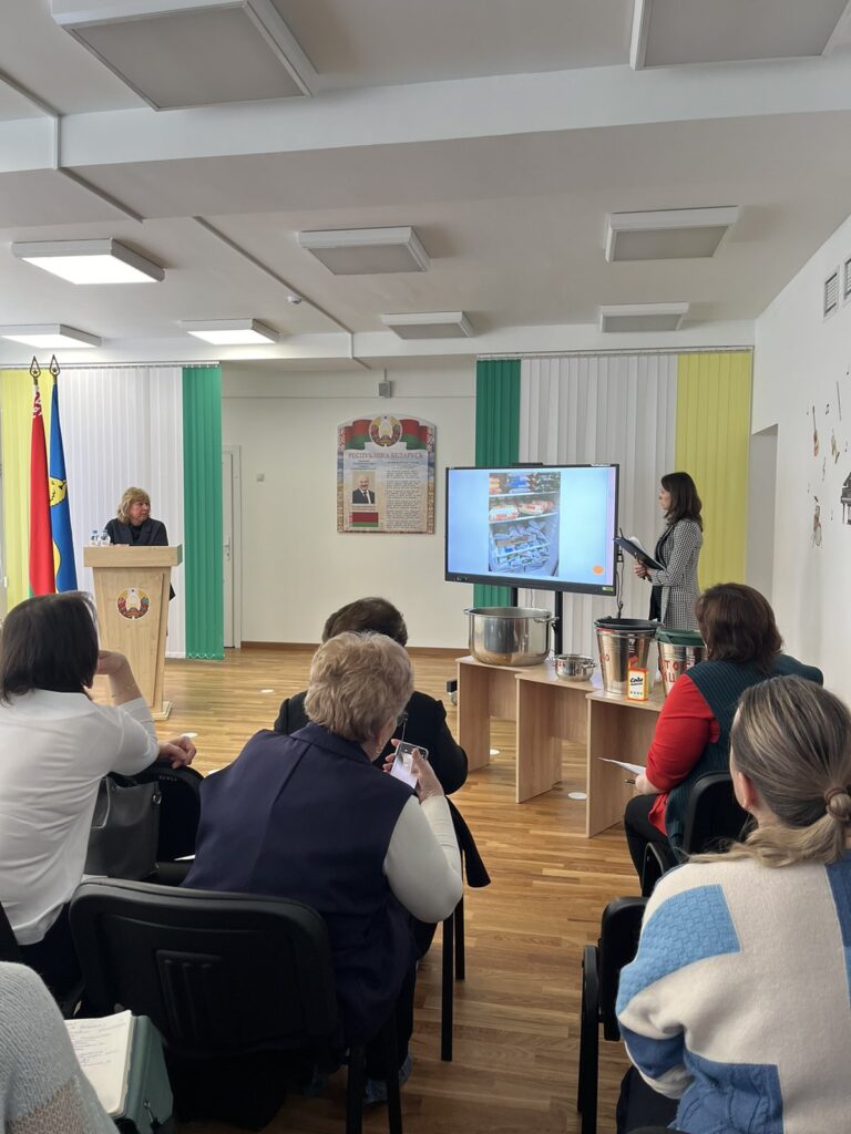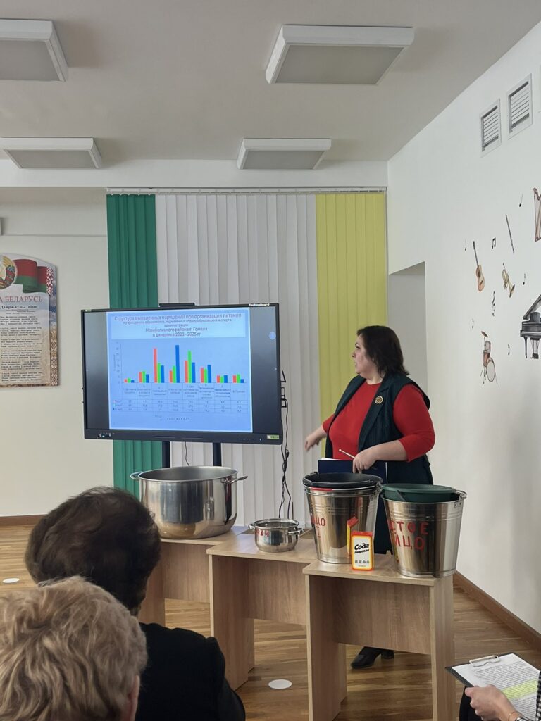 29 января на базе государственного учреждения образования ГУО «Детский сад №57 г. Гомеля» 29.01.2026г. прошёл семинар — учеба «Производственный контроль при организации питания обучающихся в учреждениях образования». В данном семинаре выступили: начальник отдела образования и спорта администрации Новобелицкого района Ирина Николаевна Дегтерова, ведущий специалист по обеспечению основной деятельности сектора воспитательной работы управления образования Гомельского горисполкома Елена Владимировна Левенкова, заведующий отделением гигиены детей и подростков ГУ » Гомельский государственный центр гигиены и эпидемиологии» Елена Станиславовна Песенко, инженер — технолог филиалов в сфере образования Гомельского государственного исполнительного комитета ГУ «Гомельский государственный центр по обеспечению деятельности бюджетных организаций», Топоркова Екатерина Александровна. А также на семинаре-учёбе выступили инженер-технолог филиала в сфере образования Советского района Сущик Руслан Васильевич, инженер-технолог Железнодорожного района Небылица Екатерина Александровна, инженер-технолог Центрального района Менская Лилия Фёдоровна.